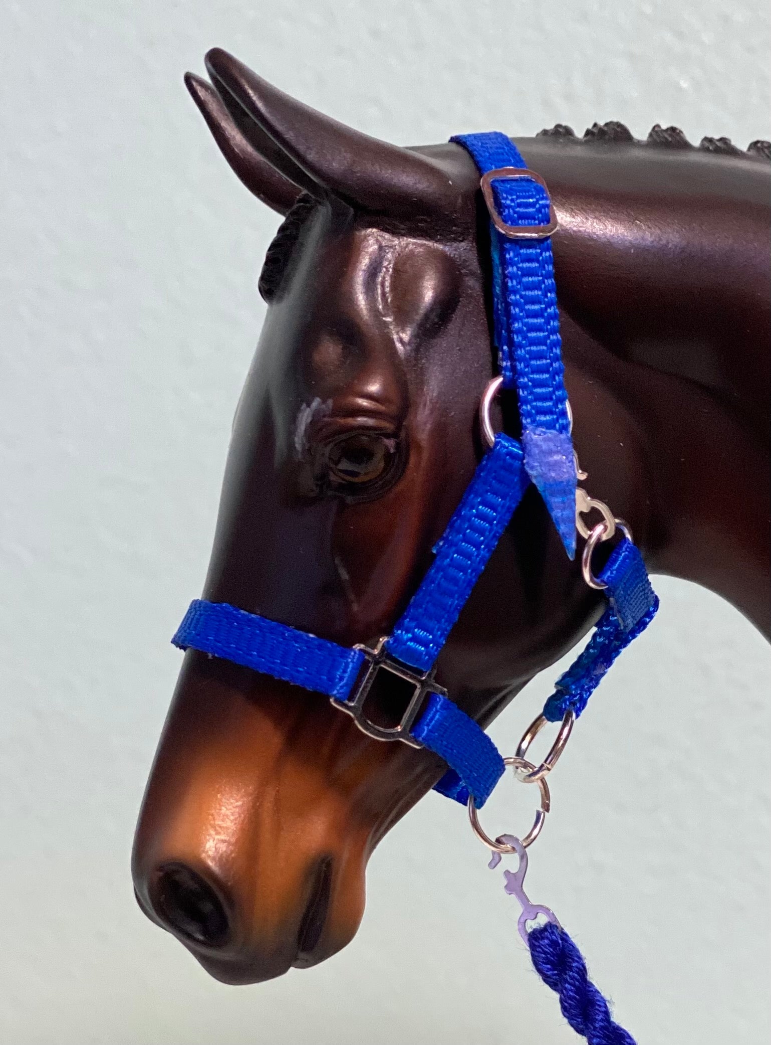 🐴 This halter has real miniature buckles and hooks that actually work so that you can easily put the halter on or take it off your model. It comes with a matching hand-twisted leadrope.