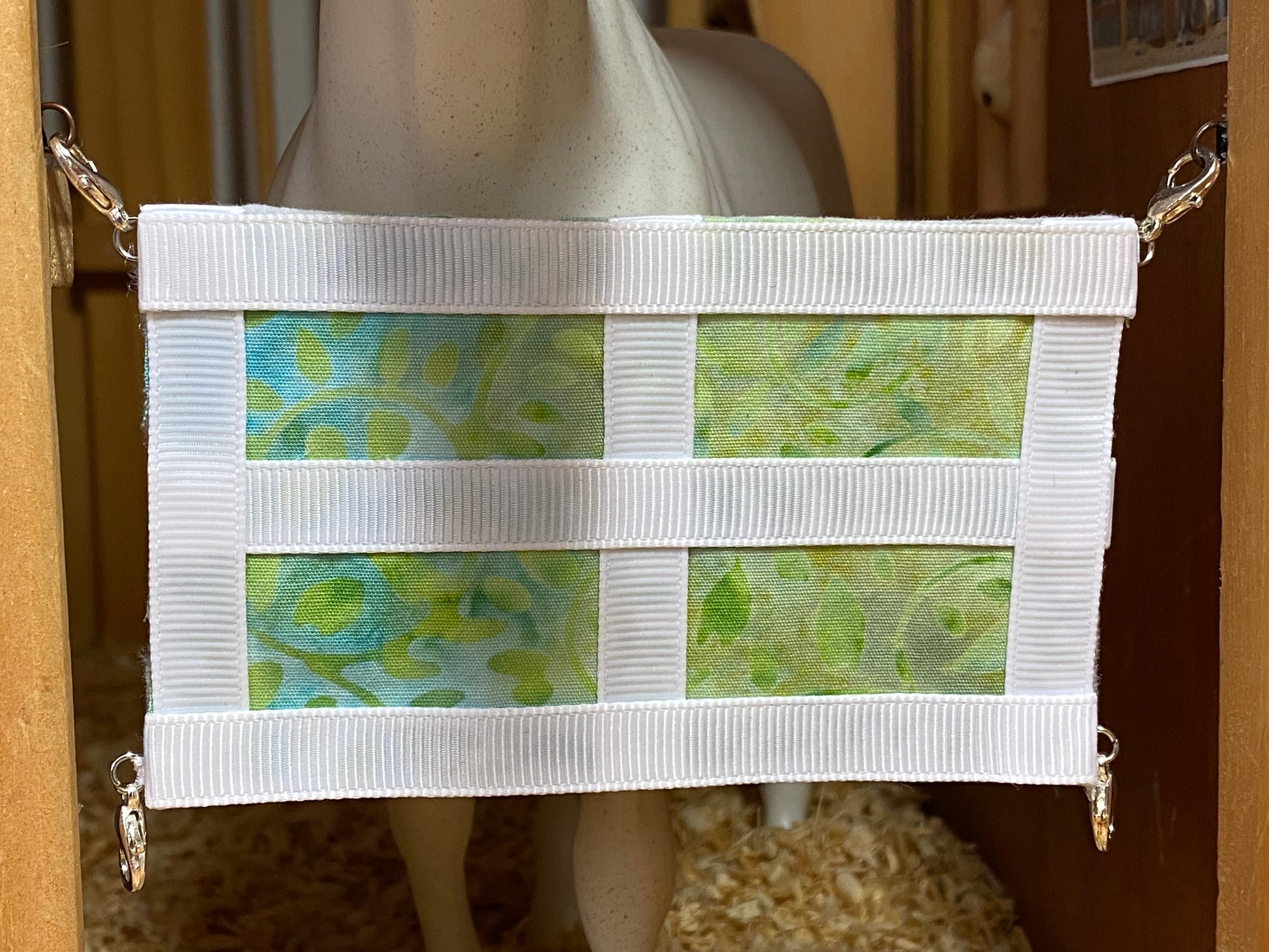 🐴 Stall guard is made of fabric and ribbon & includes small pieces (clips/jump rings) on each corner, so best suited for children old enough to not eat toys. Available in standard (4") or extra lengths. Custom lengths also available. It will fit stall openings approximately 5'' wide. Please note lengths are approximate and may vary slightly. Other items shown in picture are not included.